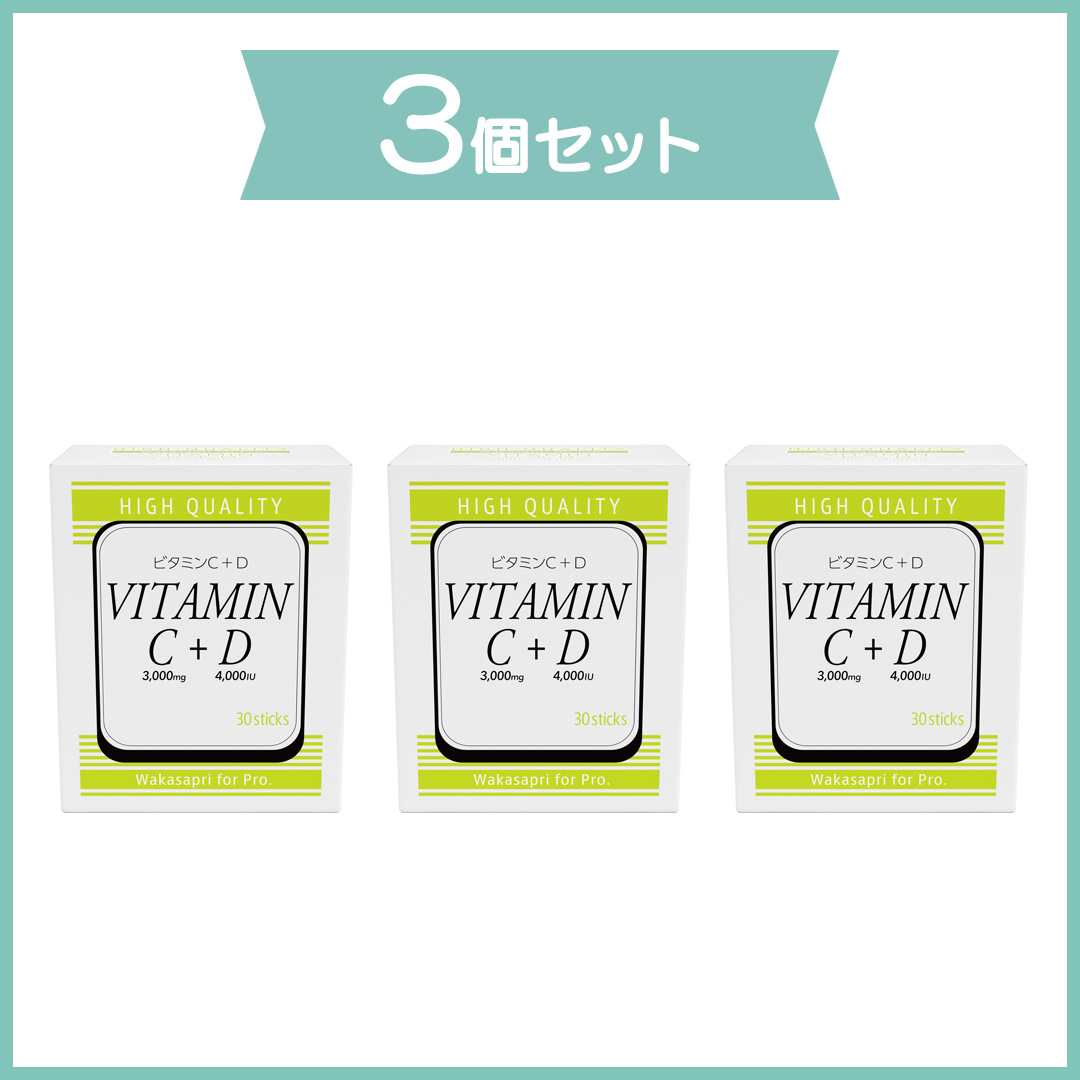 イギリス産ビタミンC、ニュージーランド産ビタミンDを1包に3,000mg(VC)、4,000IU(VD)と高配合