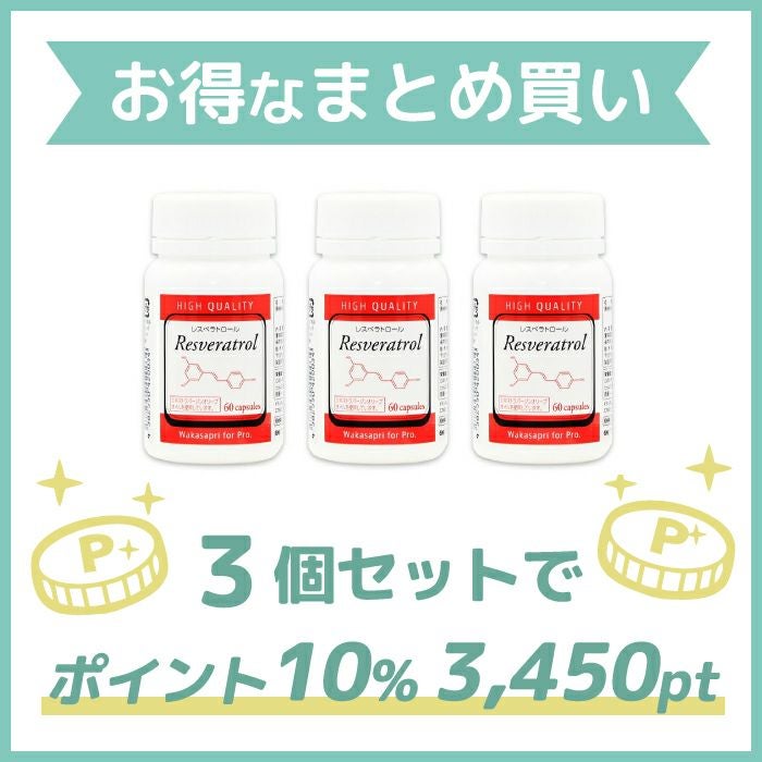 他の画像を見る サプリメント 【まとめ買い】高濃度レスベラトロール-Wakasapri(ワカサプリ)for Pro【5個セット】 受注販売のため入荷次第発送 価格 ¥ 62,100 税込 カートに入れる お気に入りに登録する